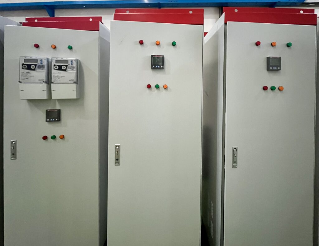 Our company has an experience in the production of low-voltage distribution panels for an on-grid Solar Power Plant system. These panels are responsible to transmit the output obtained from solar inverters to medium-voltage switchgears, before being delivered to PLN. Equipped with high-precision energy meters and essential protective components, our panels ensure a safe, efficient, and reliable energy distribution.